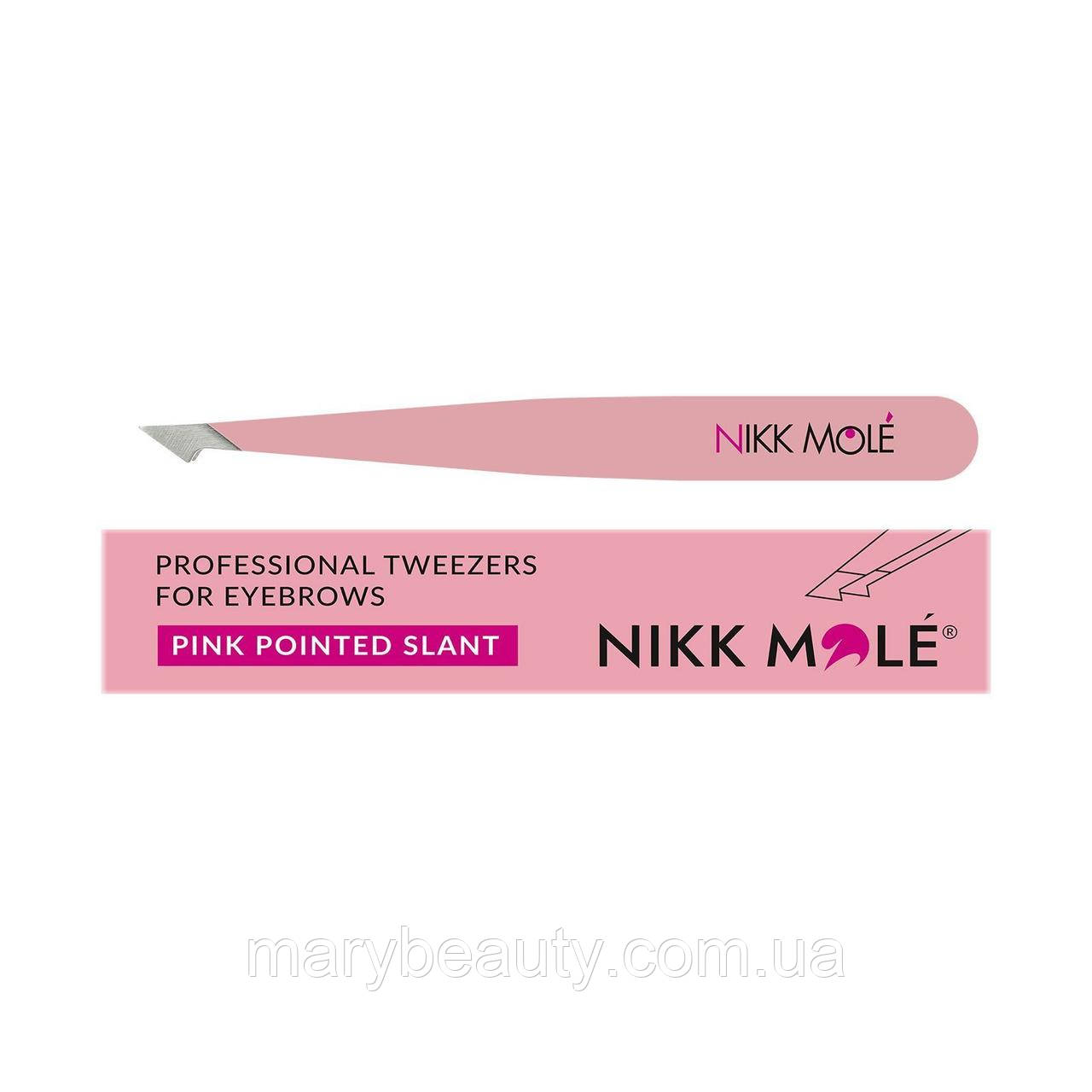 Скошений гострий пінцет Нікк Моле рожевий
